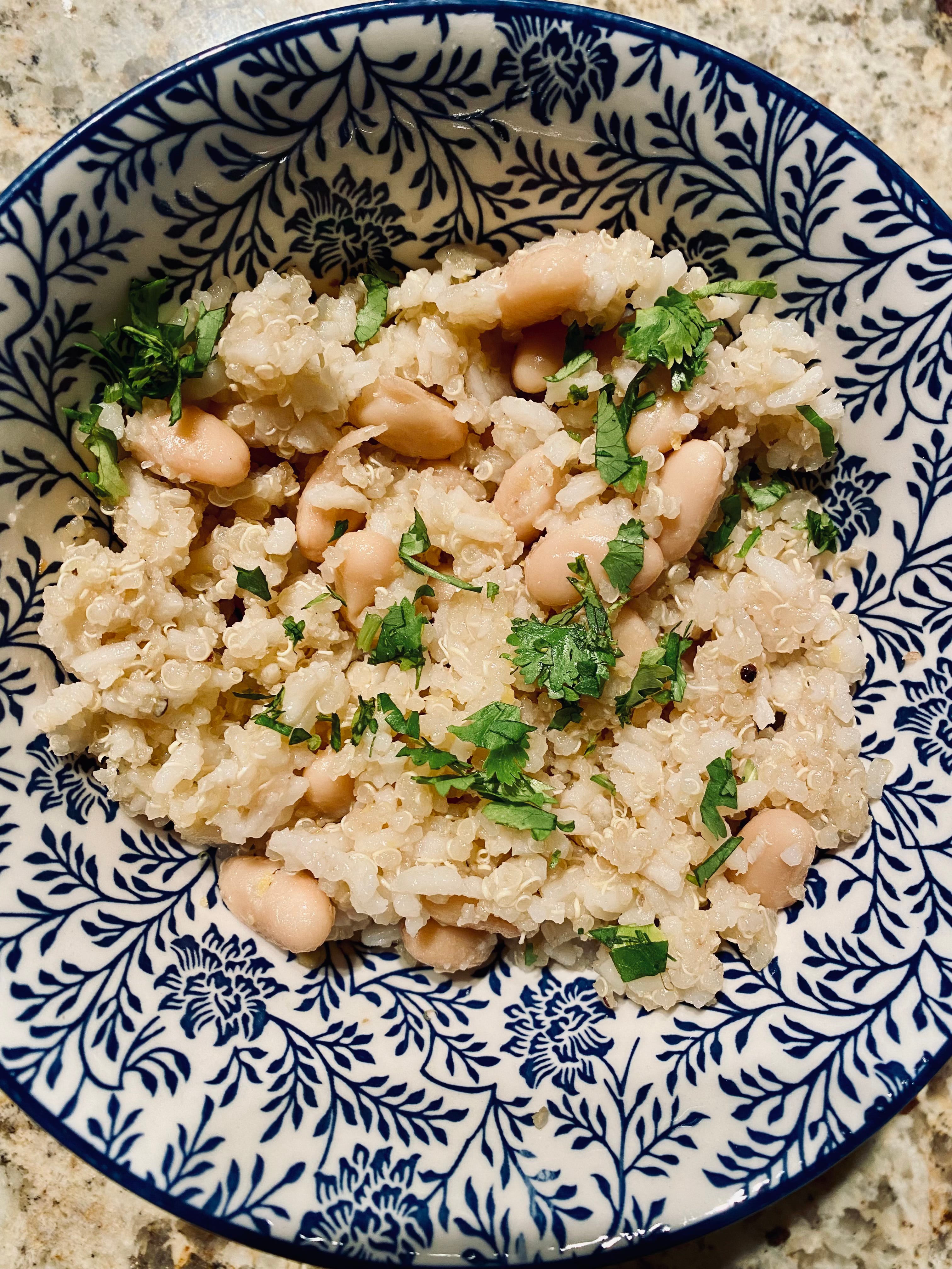 Let us never forget nor discount the magic of soothing oneself and/or irritated co-habitants with cozy, complex carbs like quinoa and beans, lightened with a soupçon of pearly white rice.
